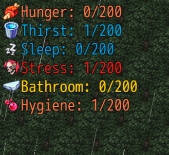 - Visual HUD (PRO Only): A customizable on-screen interface that shows the status of all needs with icons and colored text. Can be toggled by the player.